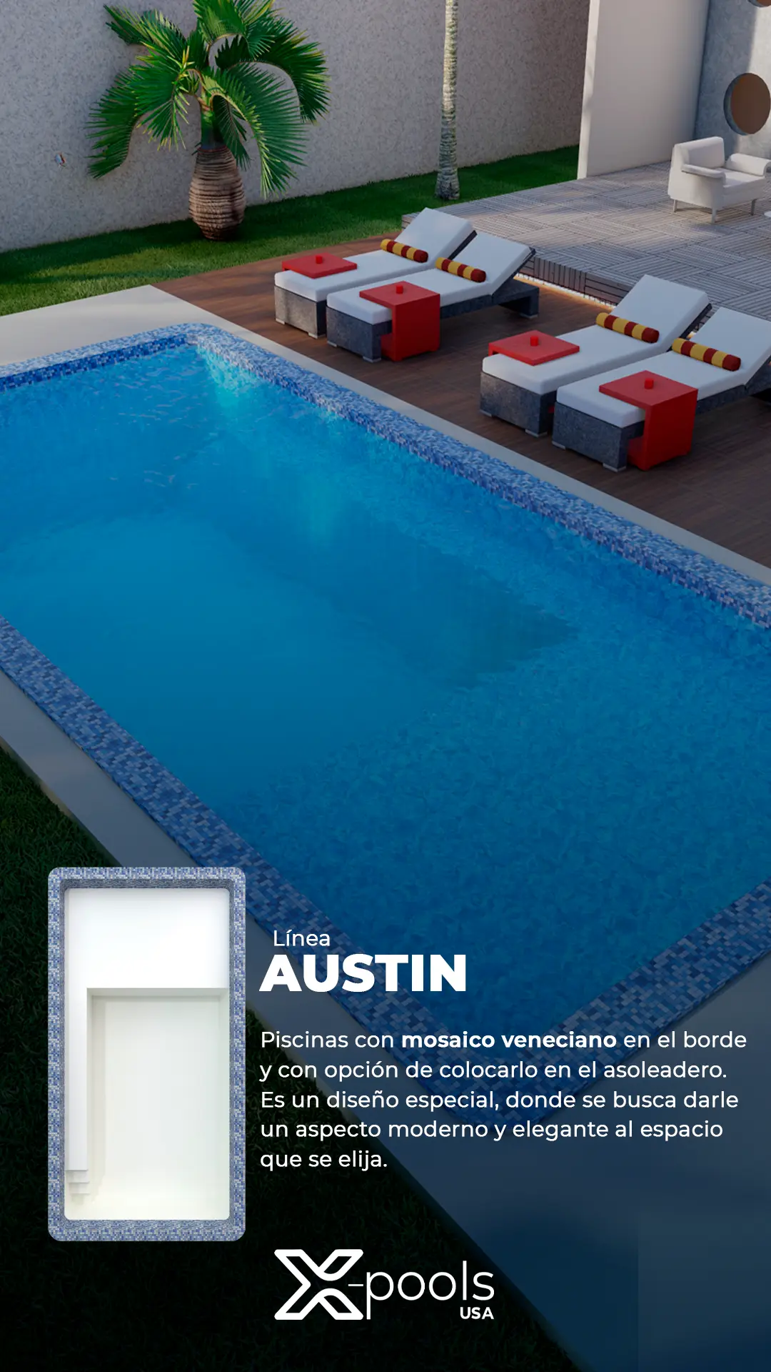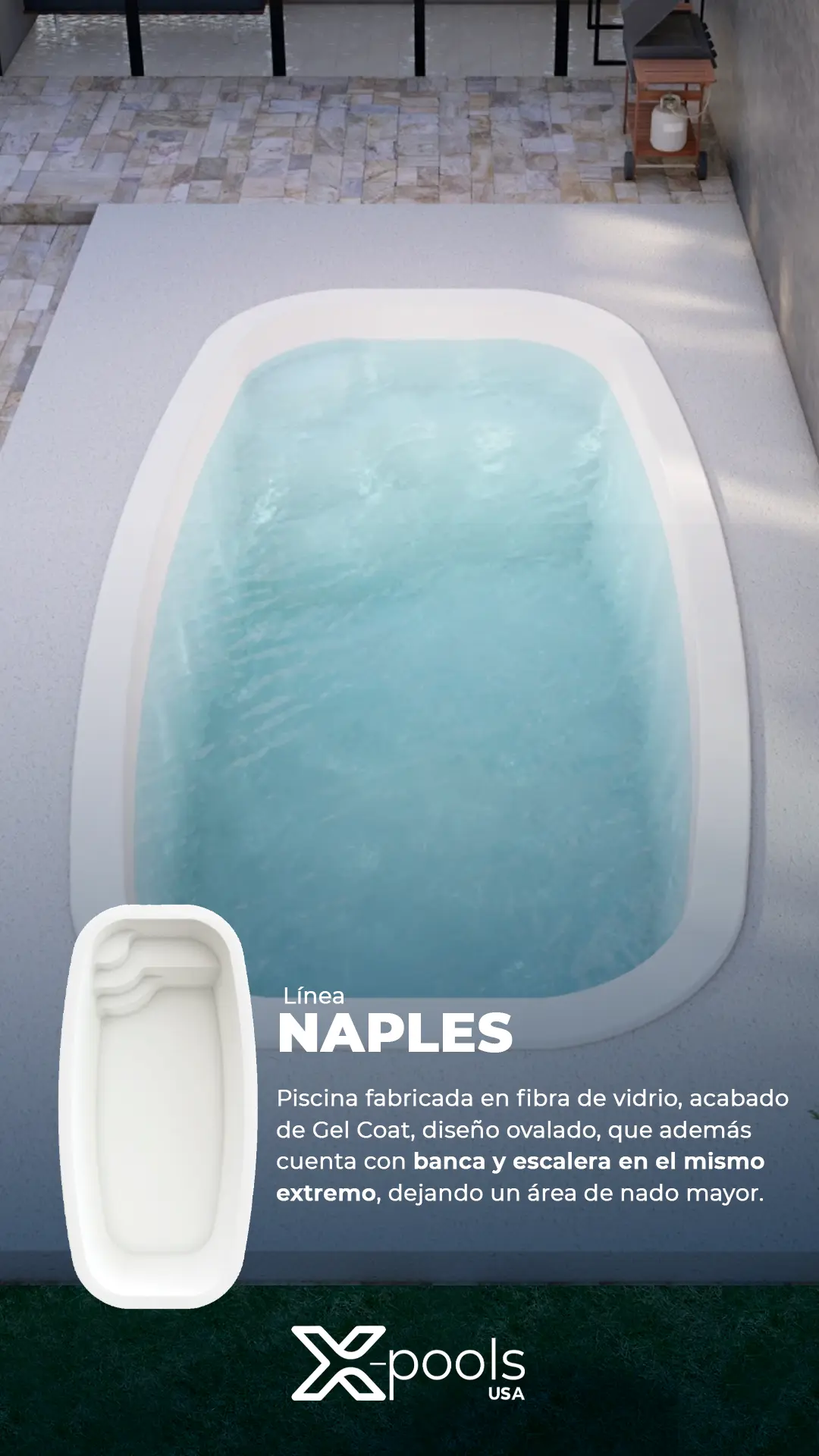 Presentamos nuestra línea de piscinas de fibra de vidrio de alta calidad con durabilidad y belleza incomparables. Con una variedad de tamaños y modelos disponibles, tenemos opciones para todos los gustos, ideales para tus necesidades.
